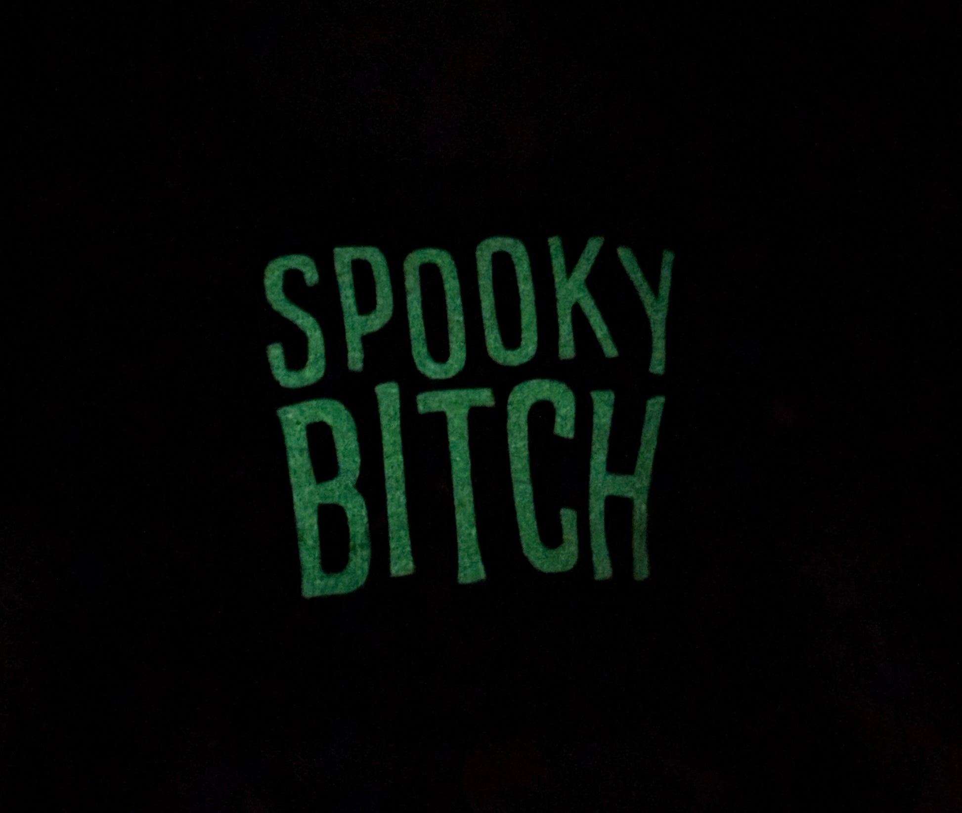 My popular Spooky Bitch Tee is now back in a cropped style! This fun tee features my original glow-in-the-dark graphic on a black crop top. This style looks great with a variety of bottoms! The back stays closed with velcro for easy on and off.
